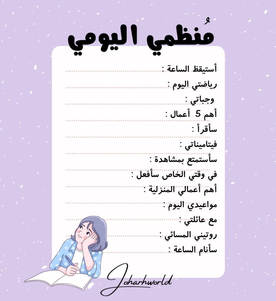 للإستزادة شاهدي تدوينة مفصلة عن التخطيط اليومي :