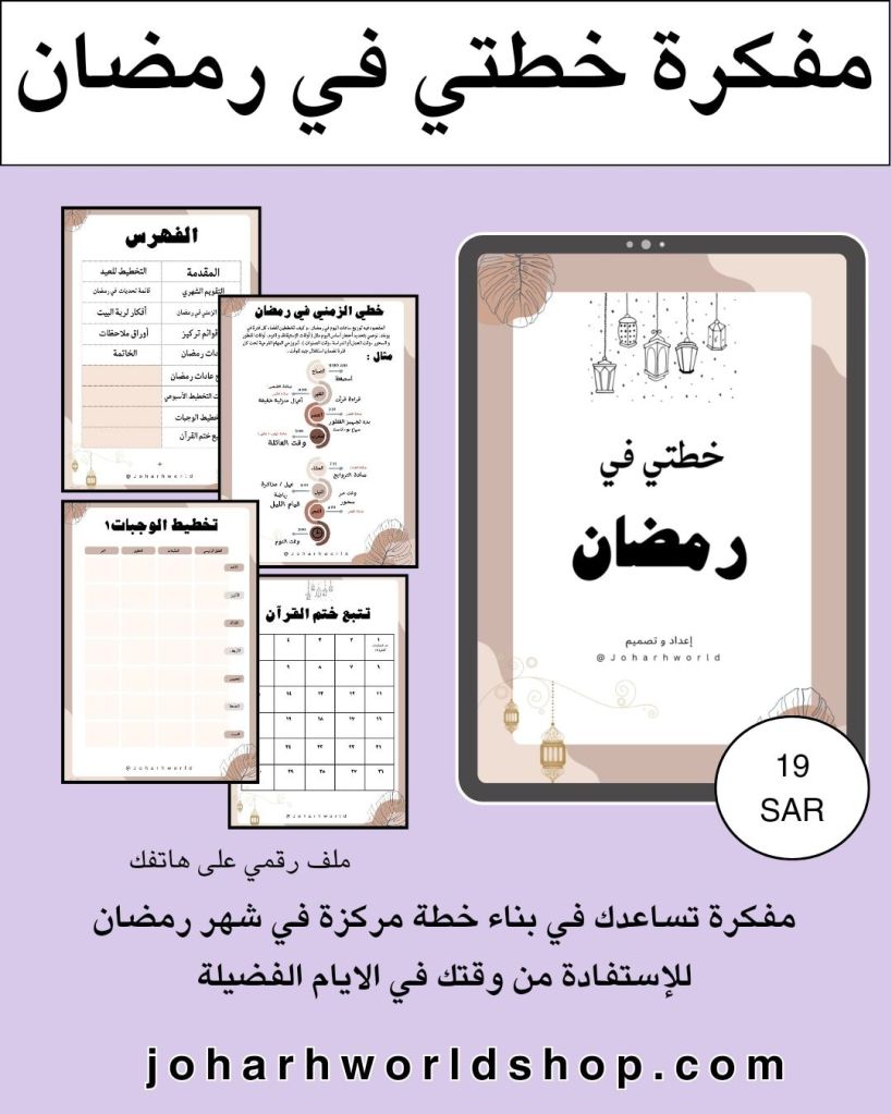 و لإختصار وقتك بإمكانك تحميل مفكرة رمضان الجاهزة مباشرة على هاتفك ثم طباعتها و ارفاقها في منظمك ( المفكرة مدفوعة ) .